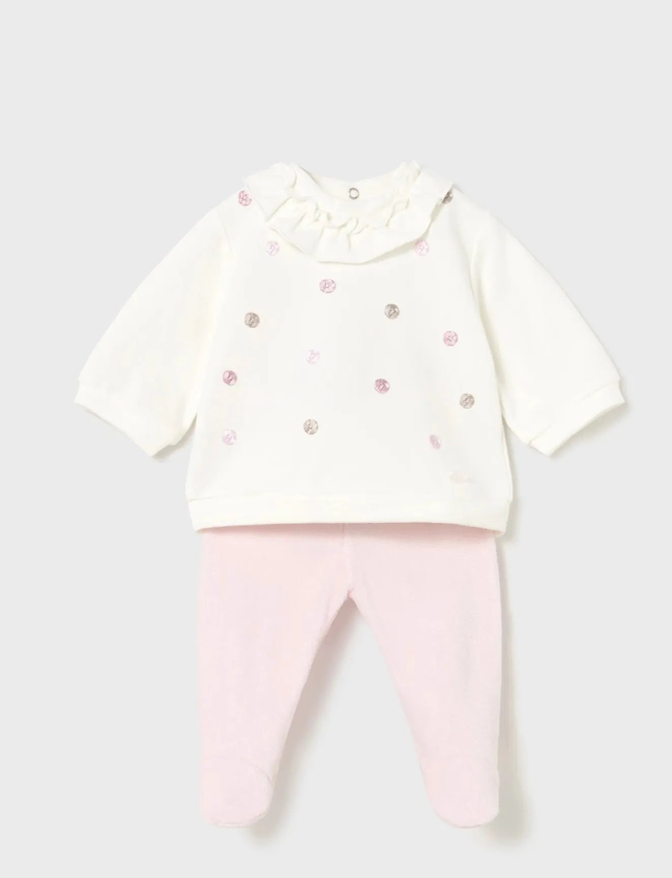 This adorable two-piece set of leg warmers for infant girls in a charming Pink & white color features fun color dot design for a sweet, stylish touch.