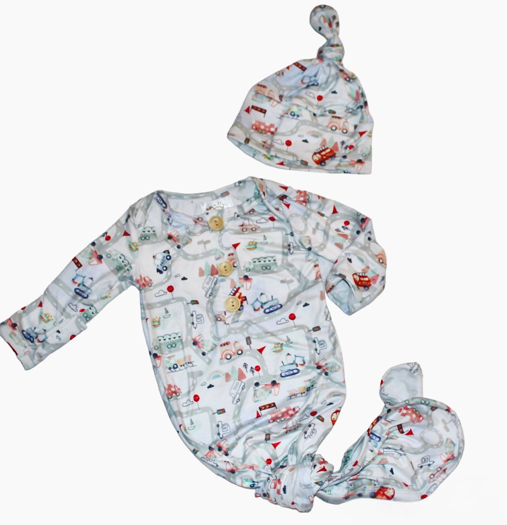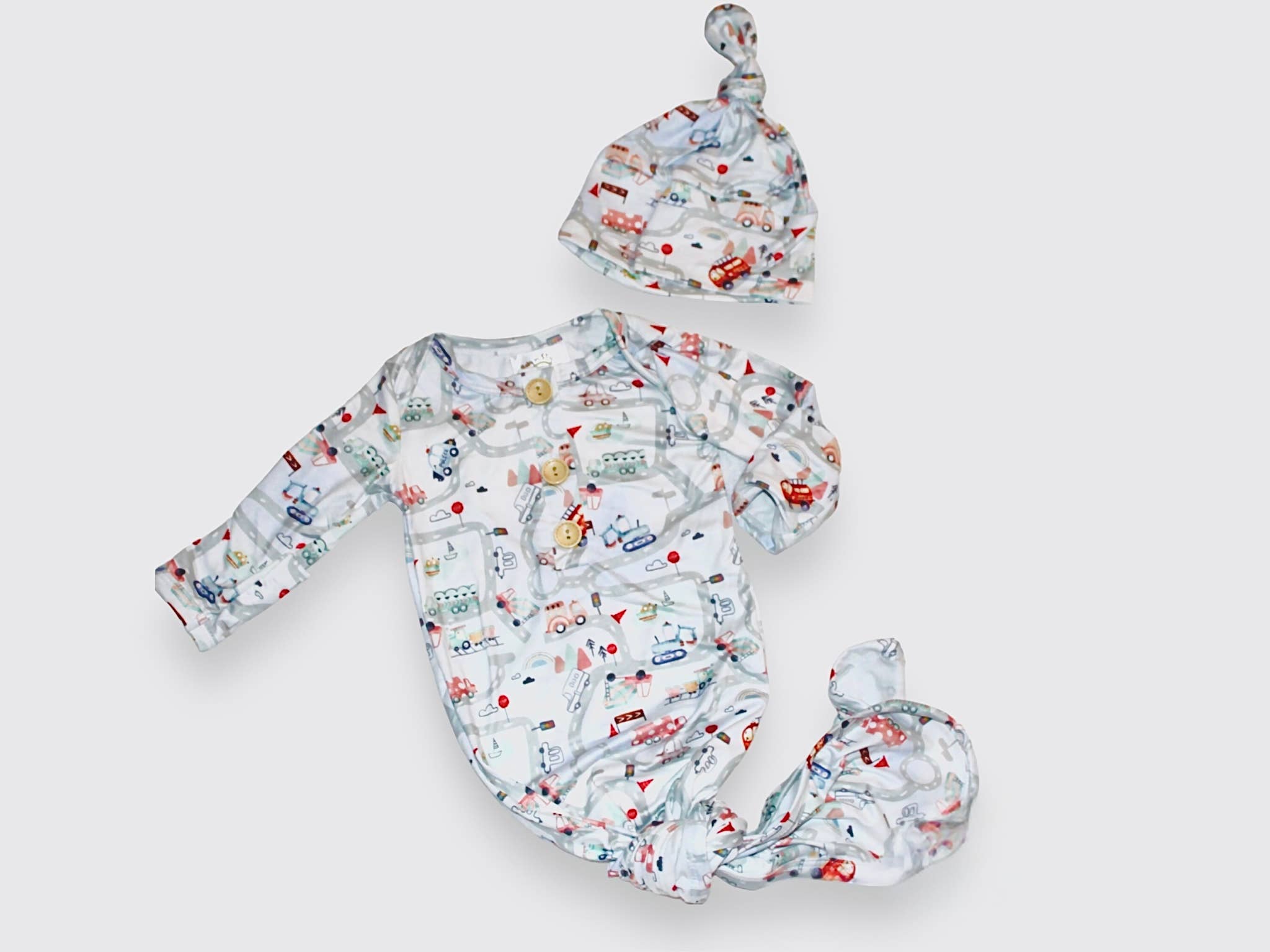 Our Newborn Knotted Gown and Bow Sets are made of a buttery soft Rayon/Spandex blend. The ultra-soft baby gown features built-in no-scratch mittens to protect your baby’s delicate face from fingernail scratches. The working buttons allow you to easily pull the gown over your baby’s head and the knotted bottom of the gown makes diaper changes super easy! Change that diaper then simply tie in a knot for a secure fit.
