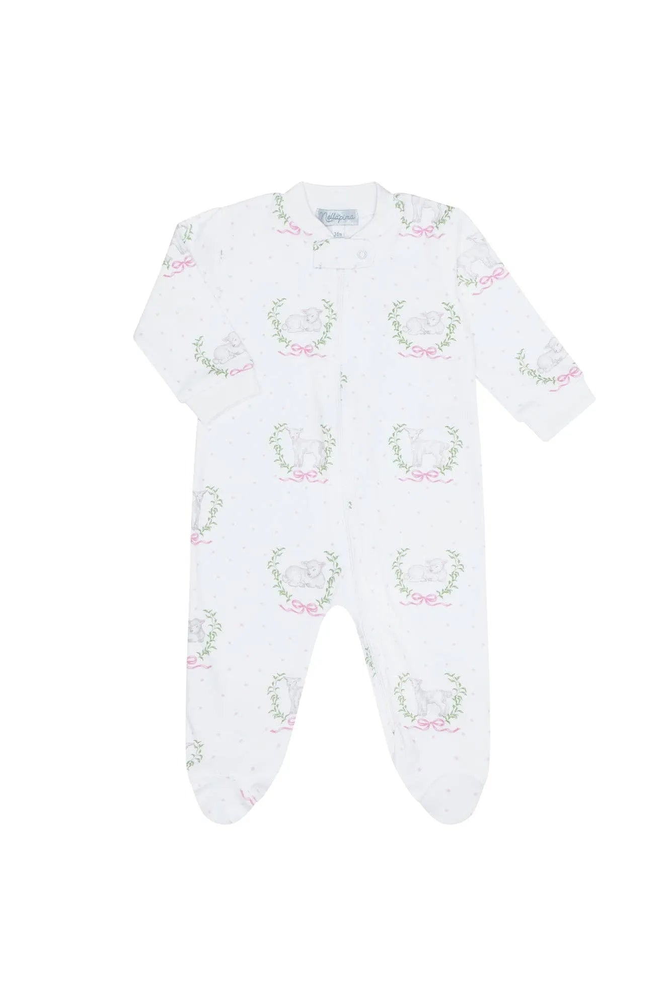 Nellapima - Pink Lamb Print Zipper Footie: Pink / 6 - 9M