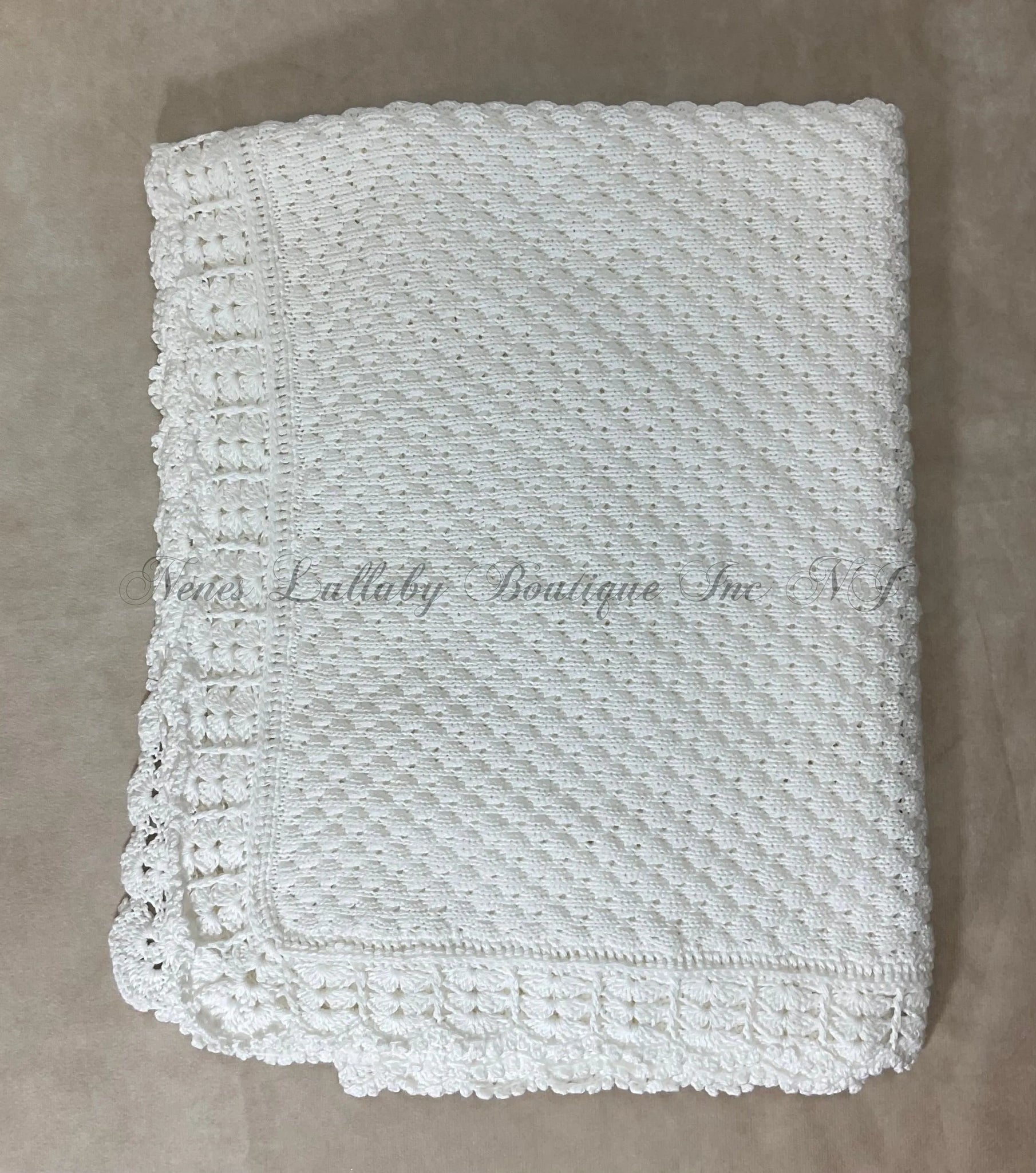 Charlotte/Dotted Manta Ligh cream 100 % Cotton Knit Blanket hand Crochet edge
