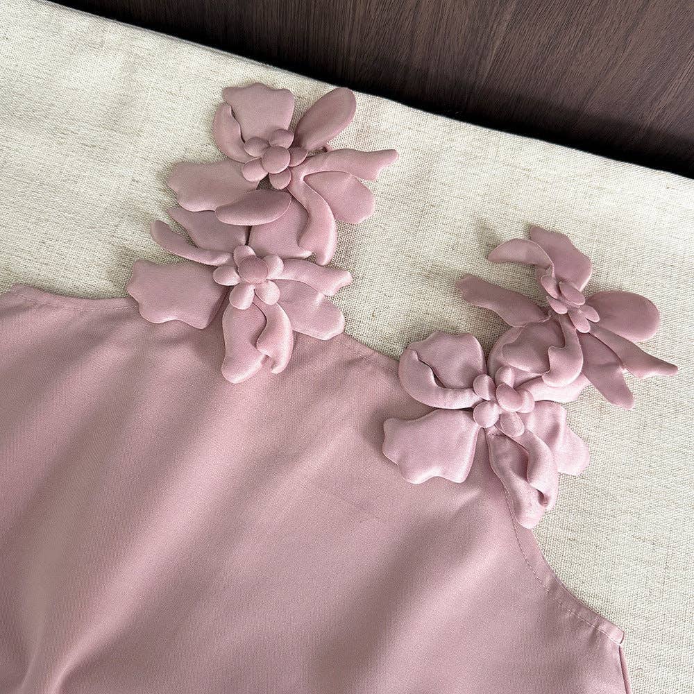 Girls' Summer 3D Floral Camisole Shorts Two-Piece Set: Pink / 4-5 Years (120cm)