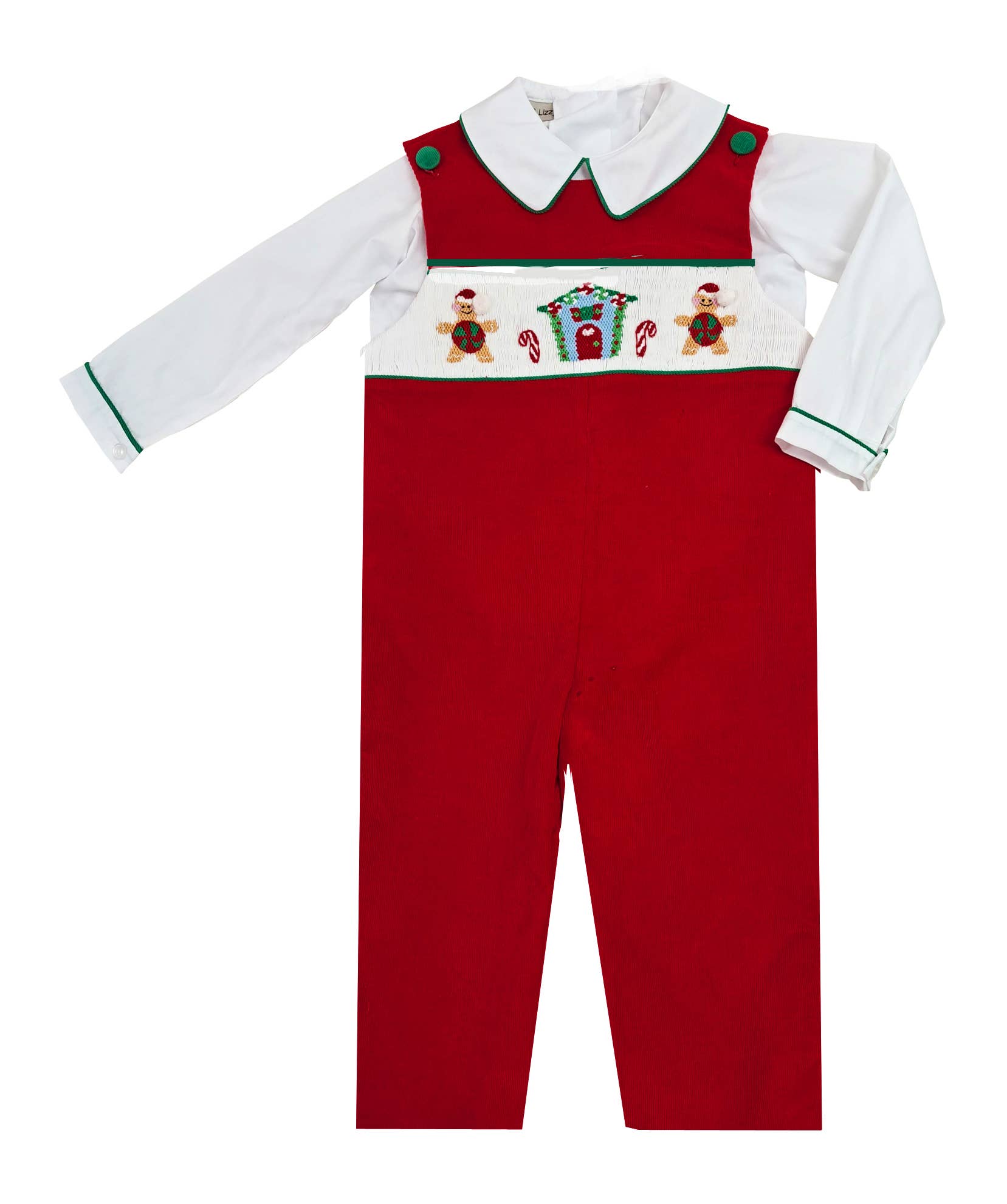 Marco and Lizzy - Gingerbread Christmas Boy Overall set: 12M - Nenes Lullaby Boutique Inc