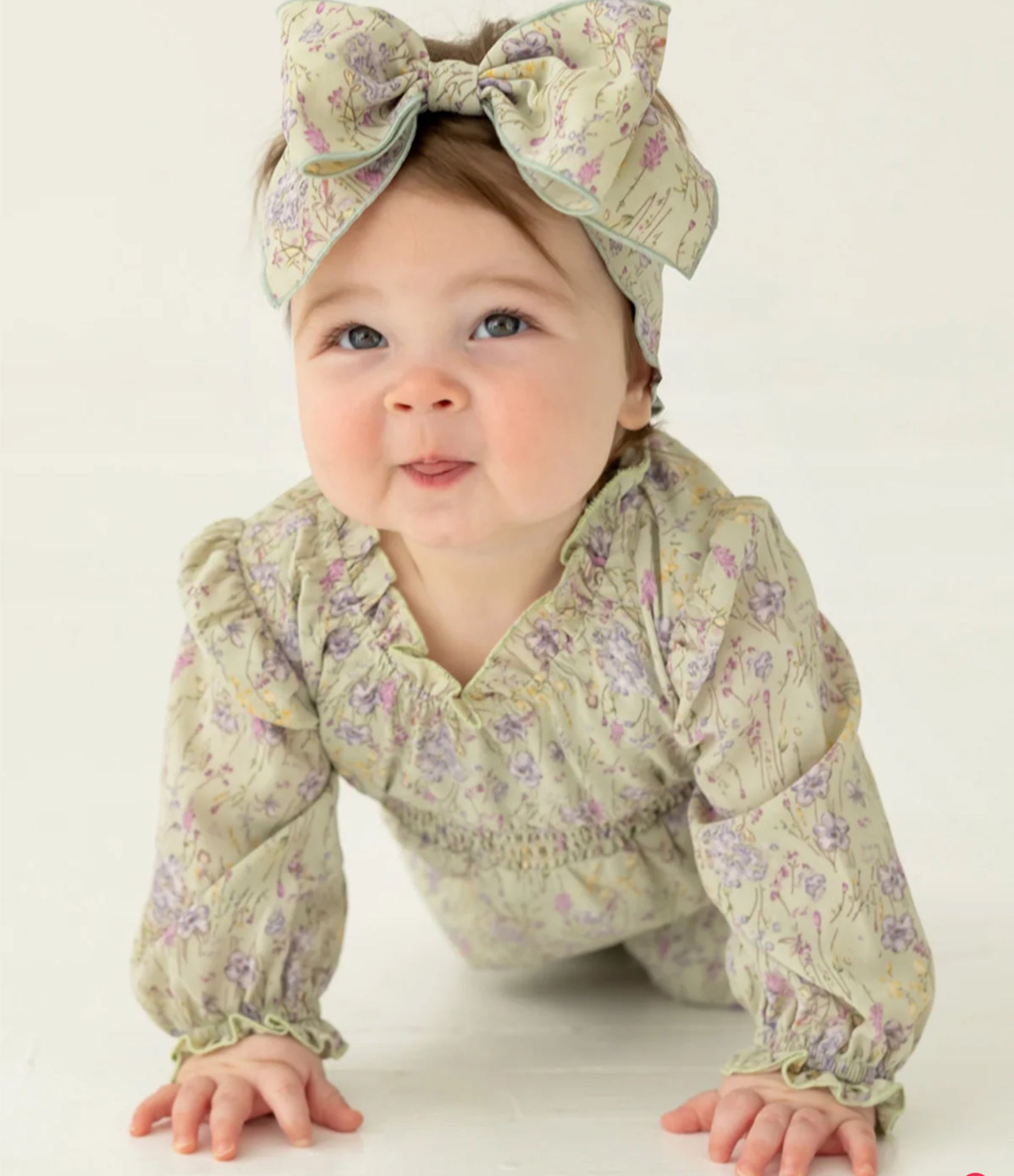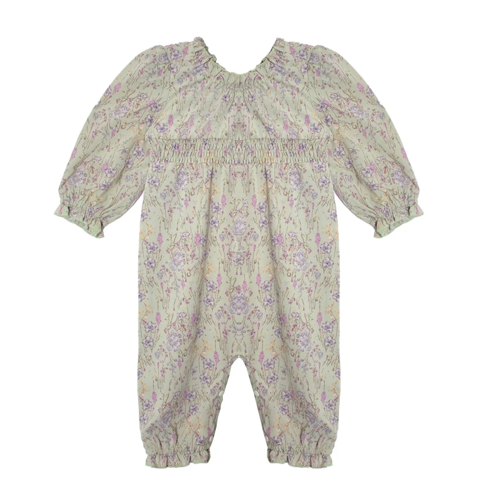 Infant girls one piece romper Green /Lavender Meadow Romper headband not included
