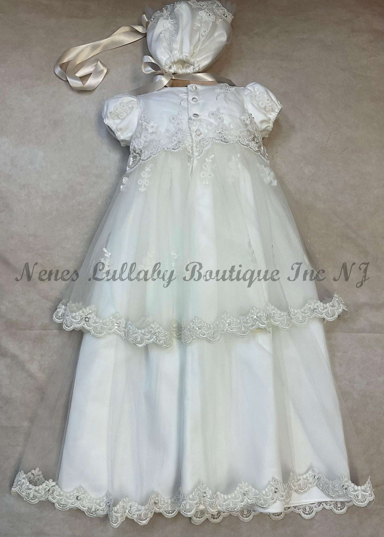 Beautiful Infant Girls Diamond White Lace Nancy  Christening gown by Piccolo Bacio Couture Christening Collections,