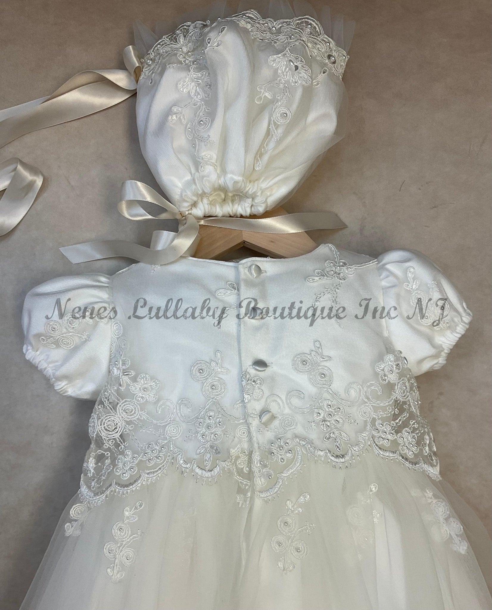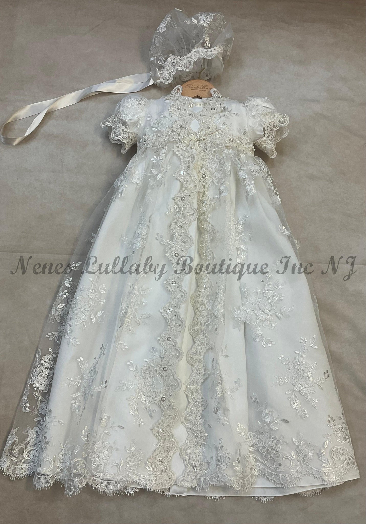 Beautiful Infant Girls Diamond White Lace Nancy Christening gown by Piccolo Bacio Couture Christening Collections,