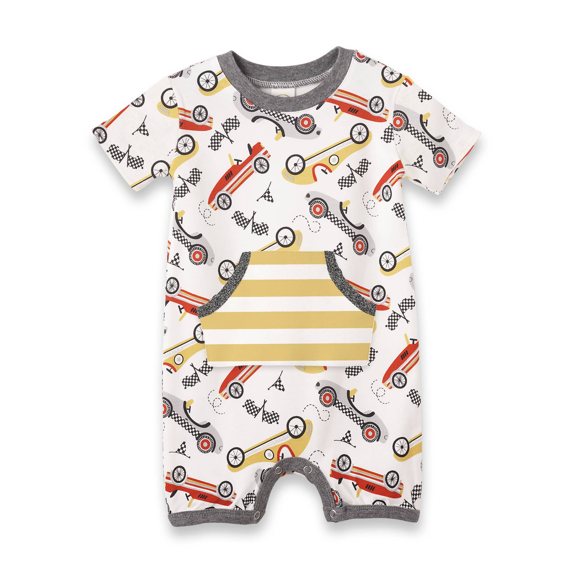 Ultra soft romper made of bamboo/cotton/spandex blend jersey. Baby will look cute and feel comfy in our absorbent, hypoallergenic, eco-friendly, and sweat resistant style. Easy pull-on crew neck and snaps underneath for changing ease.