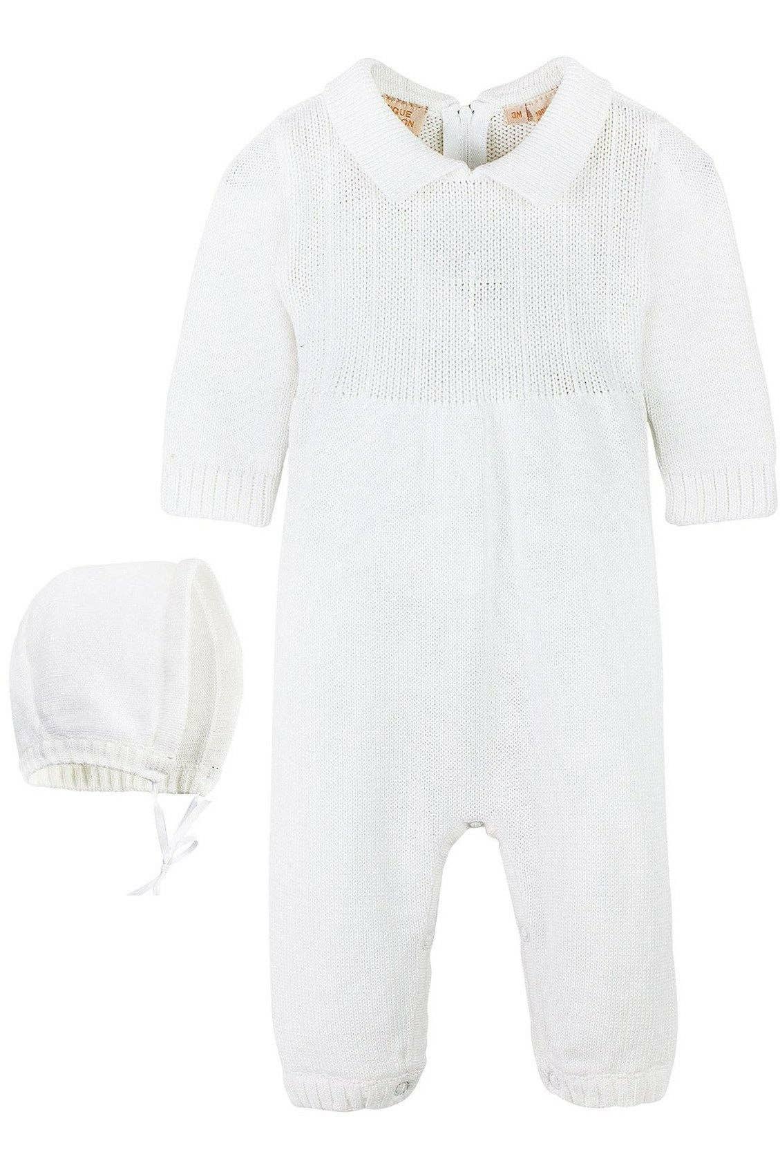 Julius Berger & Carriage Boutique - Baby Boy's Christening Outfit with Bonnet Hat - Cross Detail: 3M