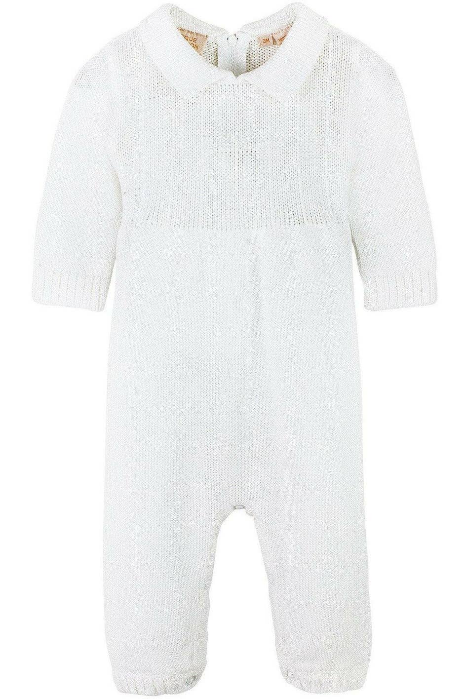 Our exclusive Christening Collection will be treasured for generations. This stunning collared one-piece in soft white, features a satin trim top with a knit cross adorned with a pearl in the center. Zip back and snaps underneath to assist with dressing. Perfect for before and after Christening. 100% Cotton. Machine Washable. * 100% Cotton * Machine Washable * Handmade * Traditional Wear * Christening/Baptism/Blessing