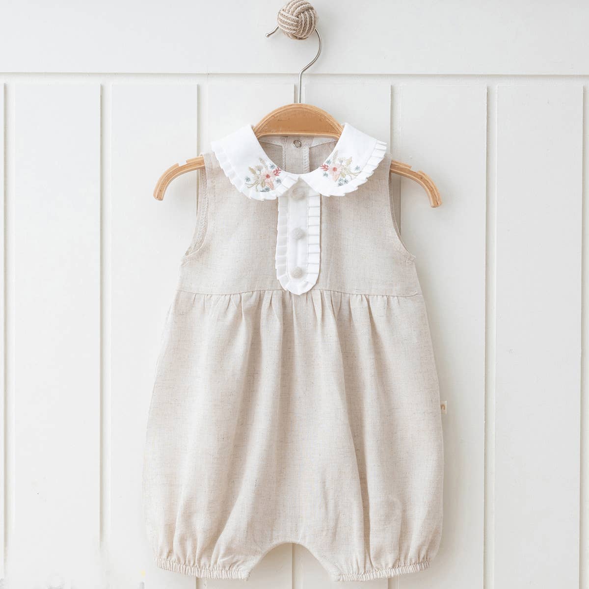 Girl Natural Linen Embrodried Romper 0-12M: 3-6M / Rose
