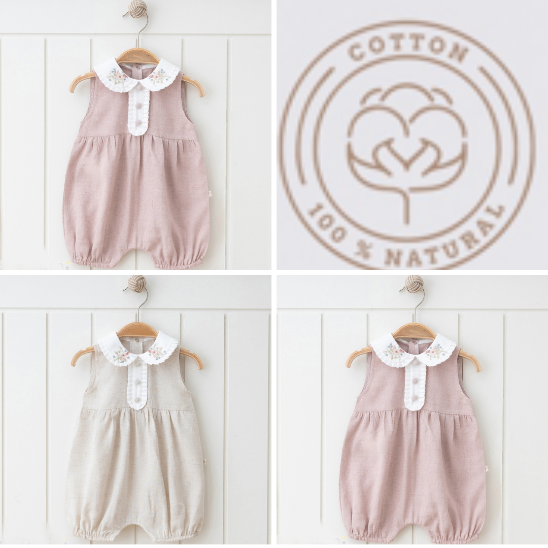 Girl Natural Linen Embrodried Romper 0-12M: 9-12M / Rose