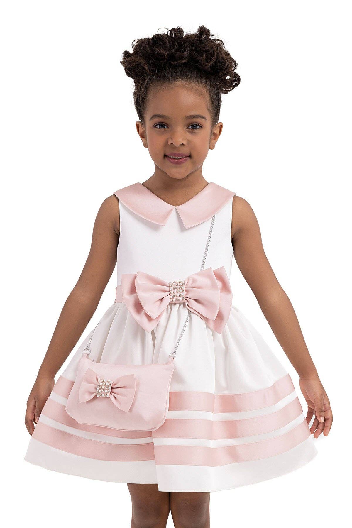 LINING FABRIC: %100 COTTON MAIN FABRIC: %97 POYTESTER, %3 ELASTANE Sleeveless cutting girl dress was designed with soft satin fabric. The girls will seem simple and elegant in this season with its wide baby collar, belt, and stripes on its hemline. The belt on its waist is eye-catching with stone embroidery and double bow is the most loveable design for girls. The shoulder bag with chain is a sparkling piece that will give elegance to every combine. Its inner lining is cotton and comfortable. It is an elegance choice to use as birthday dress, party dress * Features of Product: * Cotton lining * Satin fabric, tulle fabric * Sleeveless cutting * Pearl and stone embroidered * Bow and bag accessories * Every set consists of 5 different ages. * There are sizes for 2 years, 3 years, 4 years, 5 years, and 6 years. * Ecru, powder, and mint dresses are available. * Product code: 33167PR