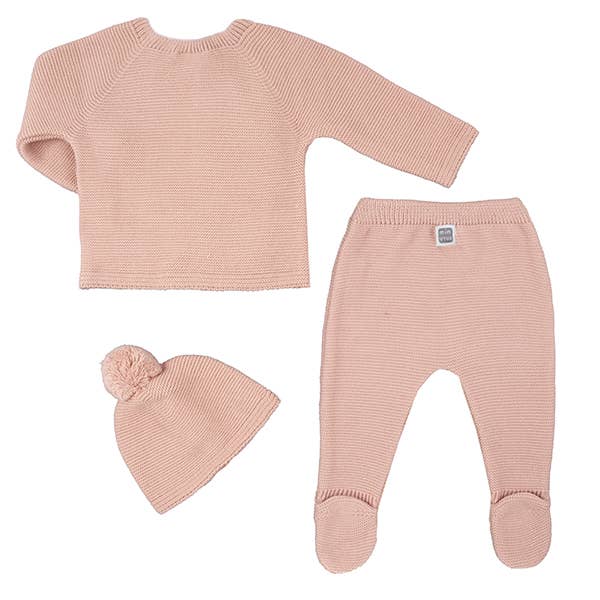 A three-piece set that includes a sweater, gaiter and hat, is an ideal alternative for babies on cold days. It has a modern and elegant design. It incorporates a small decorative pocket that gives a touch of tenderness. The hat with pompom adds an extra touch of style. Thanks to the front buttons, the jersey makes it easy for the little one to change clothes.