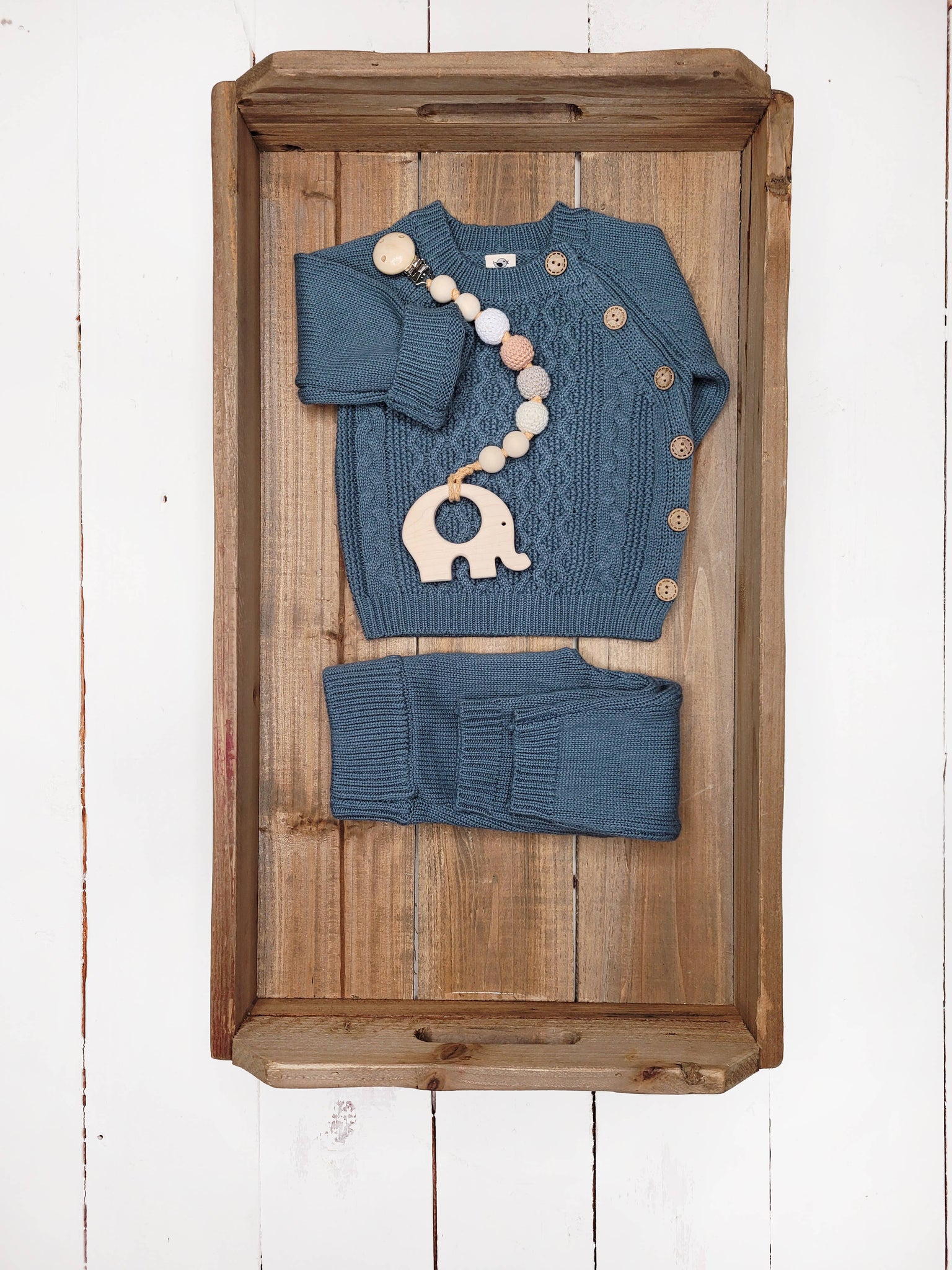 Sasha Cotton Knit 2pc Shirt and pants Baby Outfit Set: Juniper Berry / NB (6-9lbs)