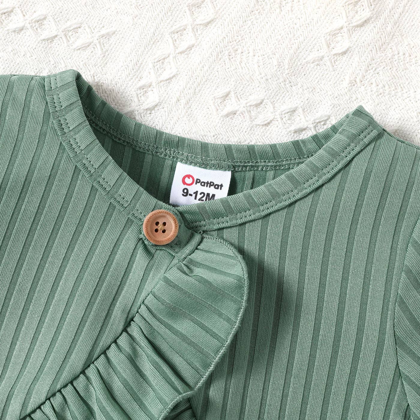 2pcs Baby Girl Solid Ribbed Short-sleeve Ruffle Top & Dress: GrayGreen / 12-18 Months