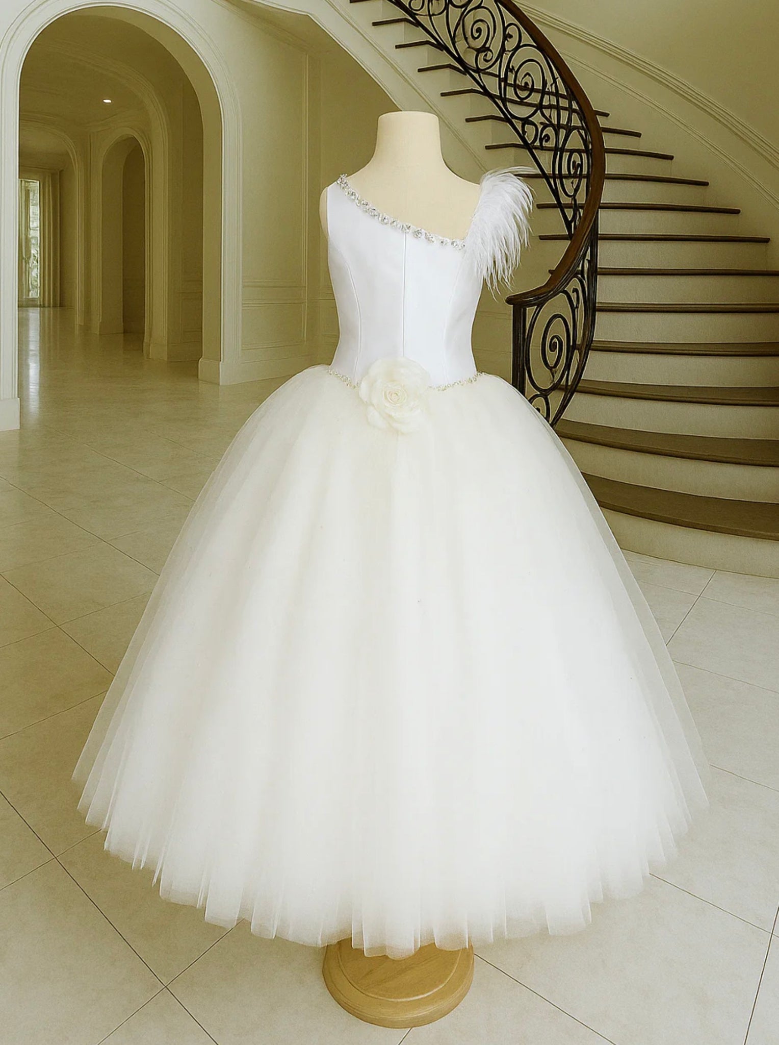 "Riley" One-Shoulder Feather Communion Ball Gown